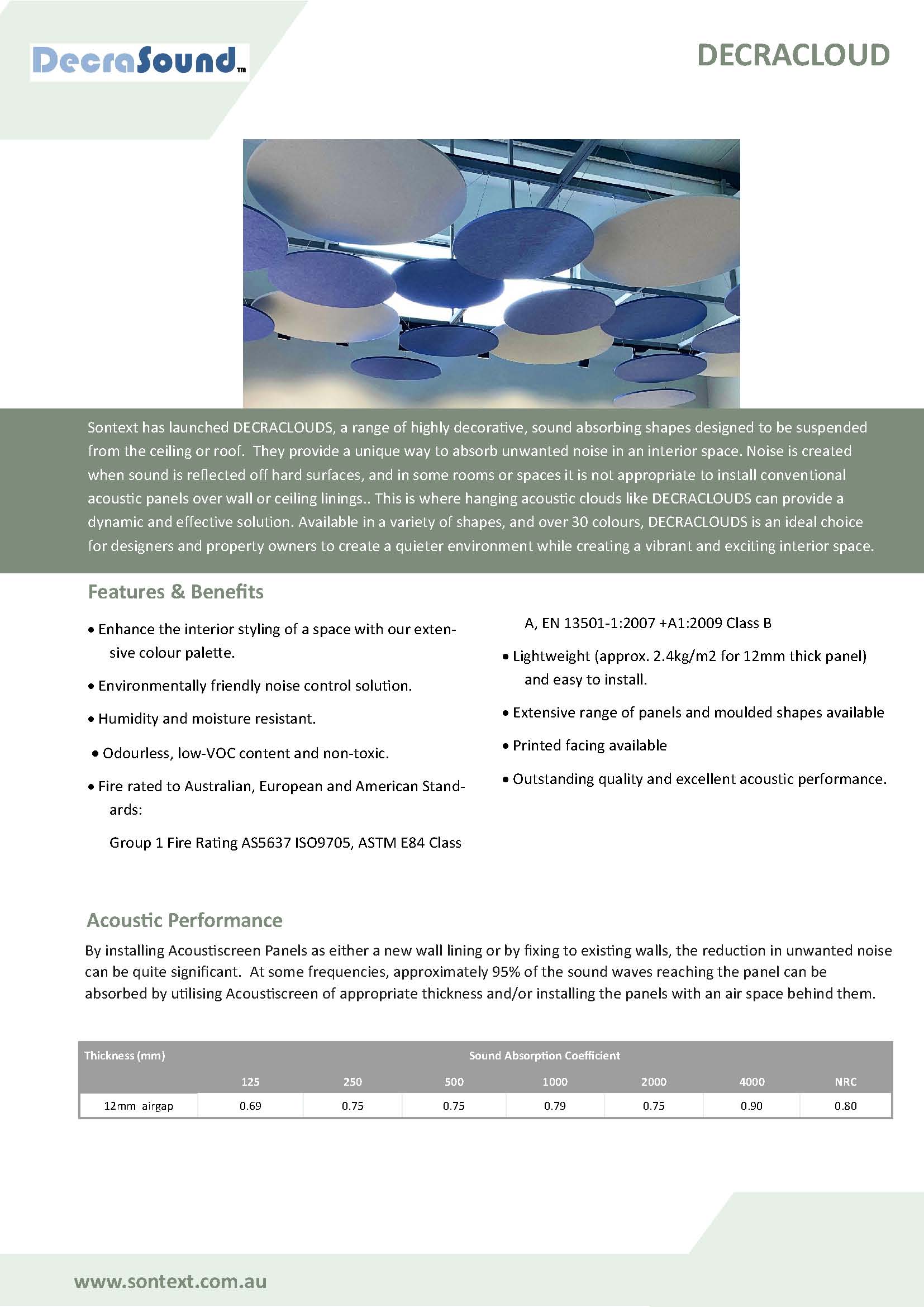 Decrasound Acoustic Clouds complement the wider Sontext acoustic panel range, including Serenity™ fabric panels and Murano™ perforated timber panels, giving architects and designers maximum choice in creating comfortable and well-controlled environments.