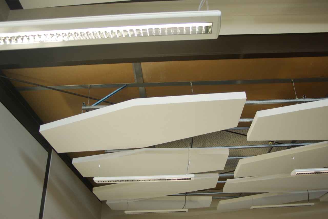Sonofonic Sound Shapes™ take the design of suspended ceiling systems into a new dimension. Manufactured from Sontext’s well-known Sonofonic™ sound absorbing Sound panels, Sound Shapes introduce a variety of shapes to ceiling panels, thus allowing the Interior Designer to break free from the constraints of designing to a standardised rectangular ceiling grid pattern. Sonofonic Sound Shapes can be used as a complete ceiling system