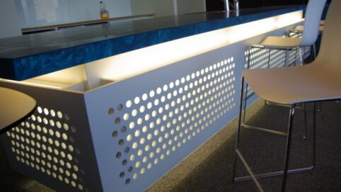 Murano Acoustic Wood Panels offer an effective acoustic solution for foyers and reception areas where design and noise control are equally important. Manufactured with a perforated or slotted core, these panels are available in timber veneer, decorative laminate, or painted finishes.